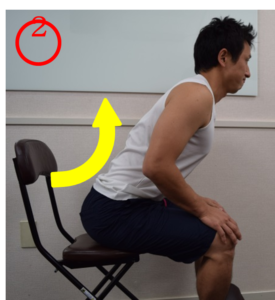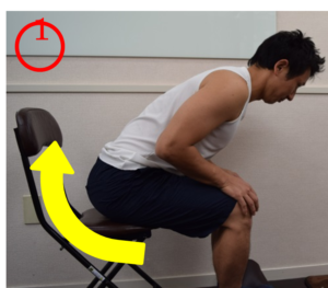 ① 上半身を倒し、お尻を上に突き上げる様に座面におろす